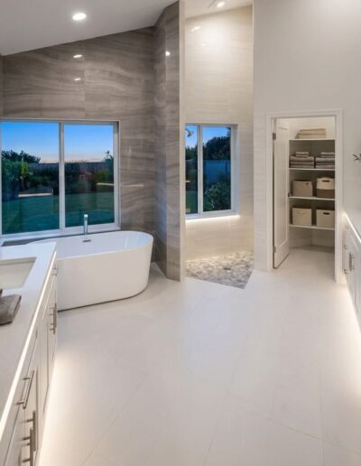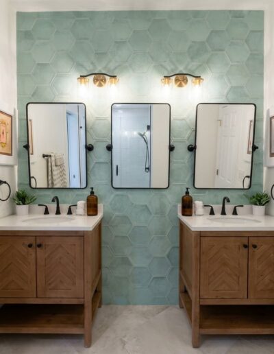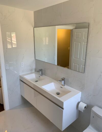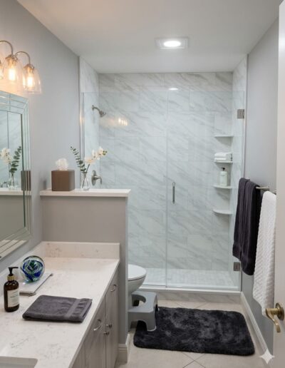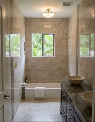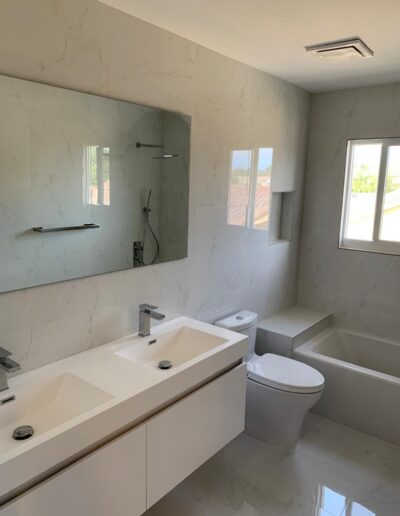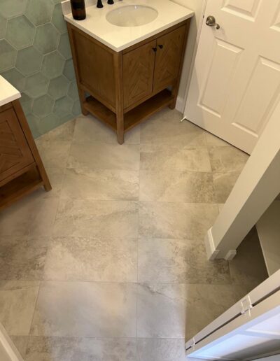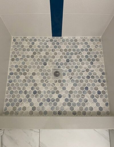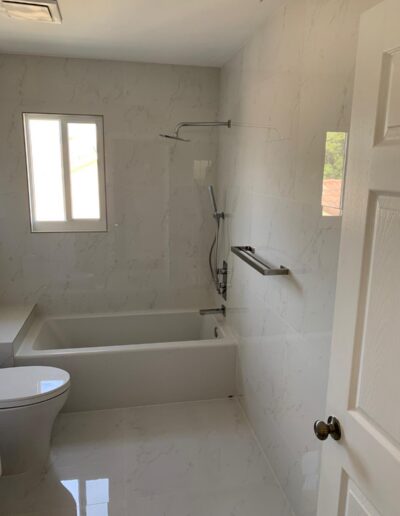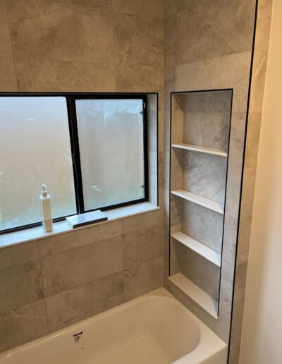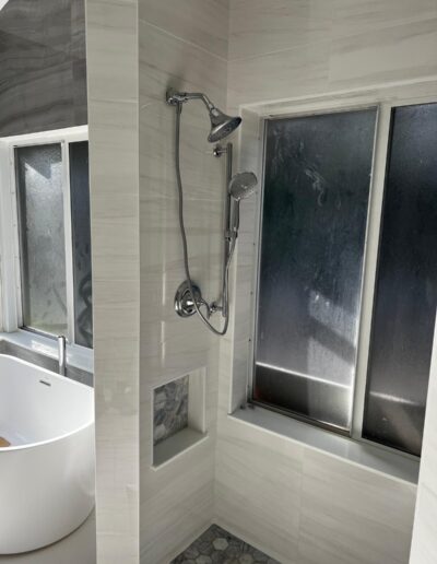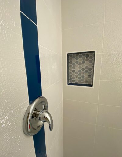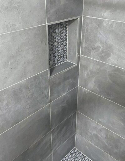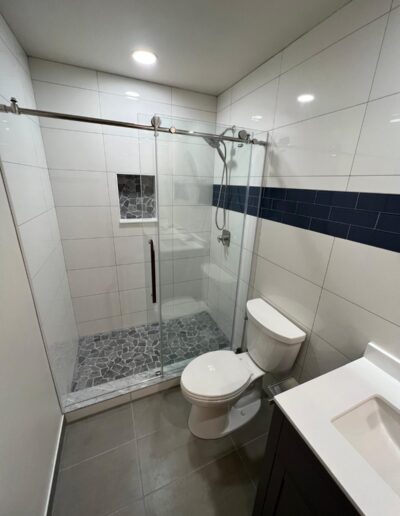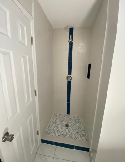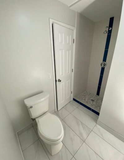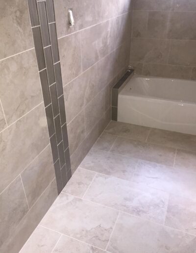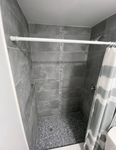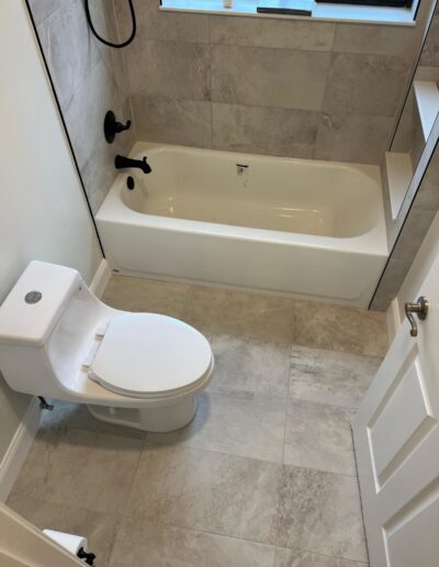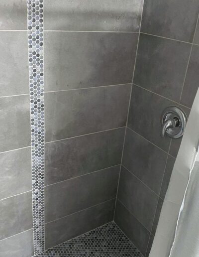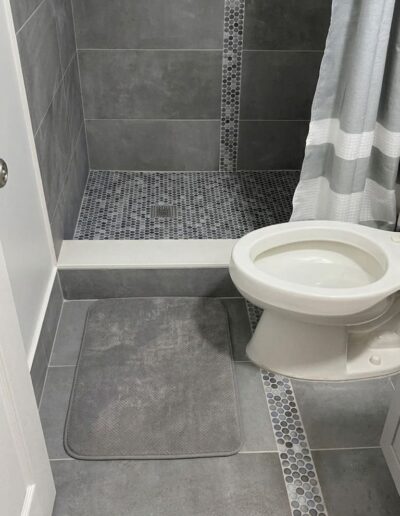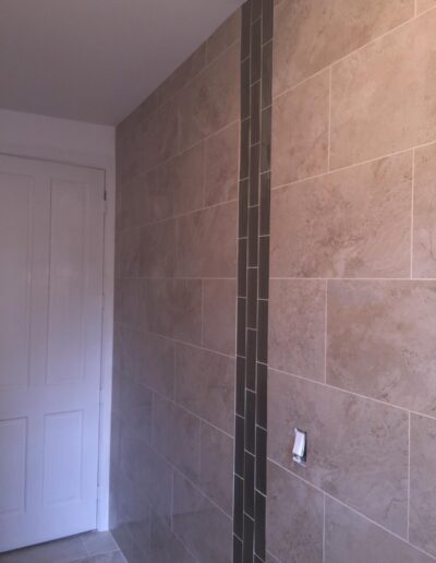 Bathroom upgrades including tile flooring, shower tile installation, and modern finishes.